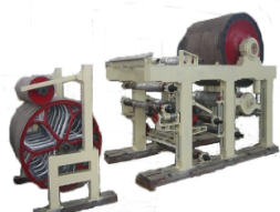 小型造紙機(jī)齒輪傳動,由齒輪傳動或由毛布帶動若干個(gè)烘缸為一組,若干組烘缸構(gòu)成干燥部。各組烘缸的線速度可以分別調(diào)整,保持各組烘缸之間微量速差以補(bǔ)償紙頁在干燥過程中的收縮。出干燥部的紙頁干度一般在92~94%左右。在干燥部末端,一般配有冷缸,使水氣能在冷缸面上凝聚。冷凝水可以濕潤紙頁表面以利于在整飾中得到較佳的表面平滑度。烘缸直徑以1.5m的效果。單面光紙可以通過采用高硬度、高光潔度缸面的大直徑烘缸而得到較高的單面光澤度,大直徑烘缸直徑一般采用3~7.5m。